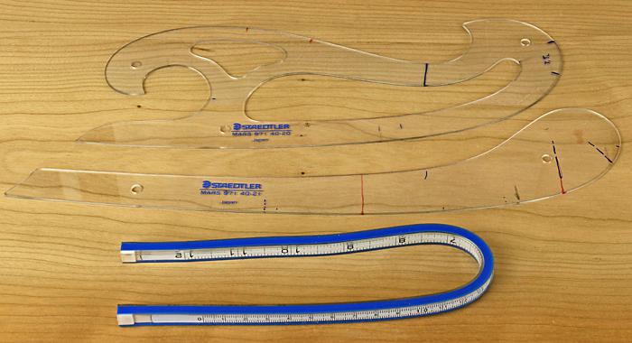 Ručni nameštaj, izvodi se metodom crtanja na papiru za crtanje ili direktno na drvetu koje se zatim pilja i oblikuje do željenog rezultata. Za to vam mogu pomoći francuske krivulje koje mozete videti na slici, one su posebno korisne za crtanje oštrih krivina sekcije, dok su krivulje broda kao u središtu fotografije najkorisnije za postepenu promenu krivina.